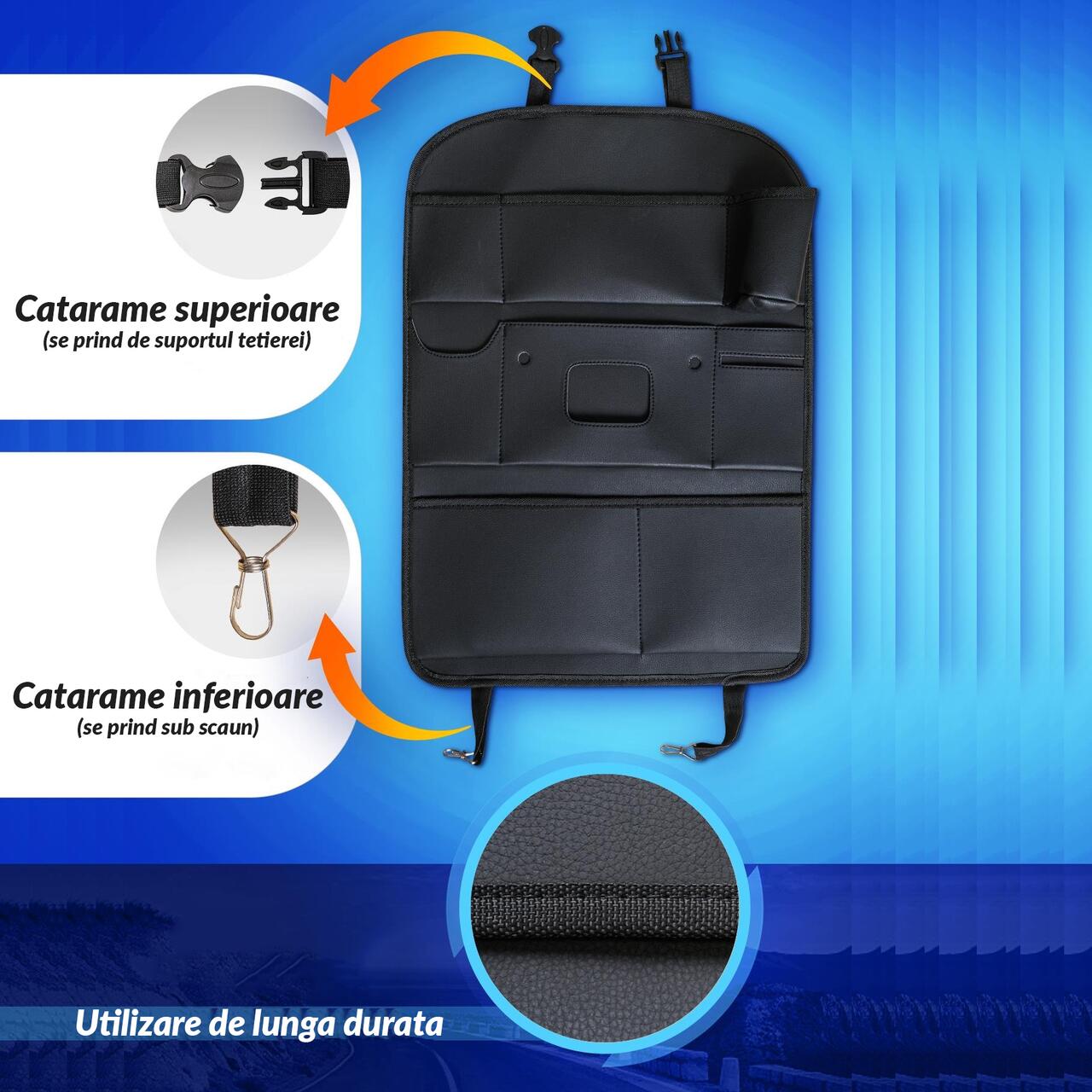 Organizator compartimentat pentru spatar scaun fata, piele ecologica neagra