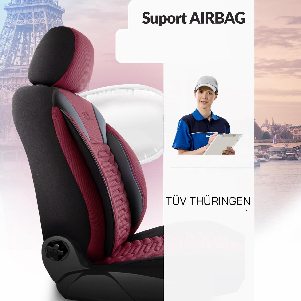 Set Huse Scaune Auto Panda Paris, negru – visiniu, 11 piese