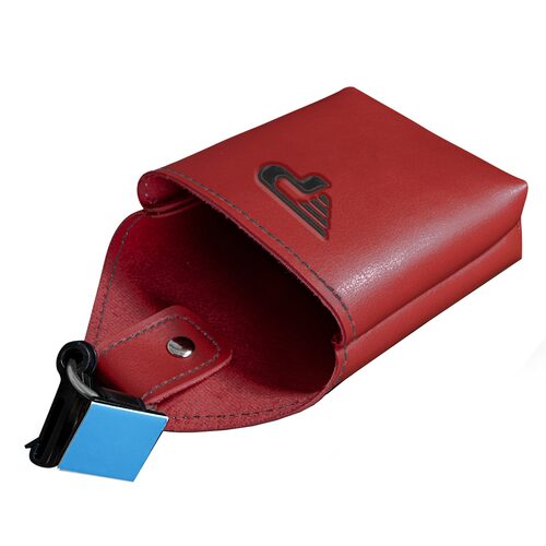 Suport telefon din piele ecologica, prindere grila, culoare rosu cu negru