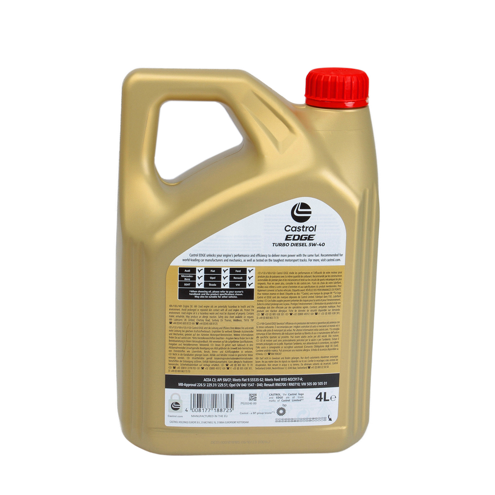 Norme: ACEA C3; API SN/CF; Meets Fiat 9.55535-S2; Meets Ford WSS-M2C917-A; GMdexos2™*; MB-Approval 226.5/ 229.31/ 229.51; Renault RN 0700 / RN 0710; VW 505 00/ 505 01