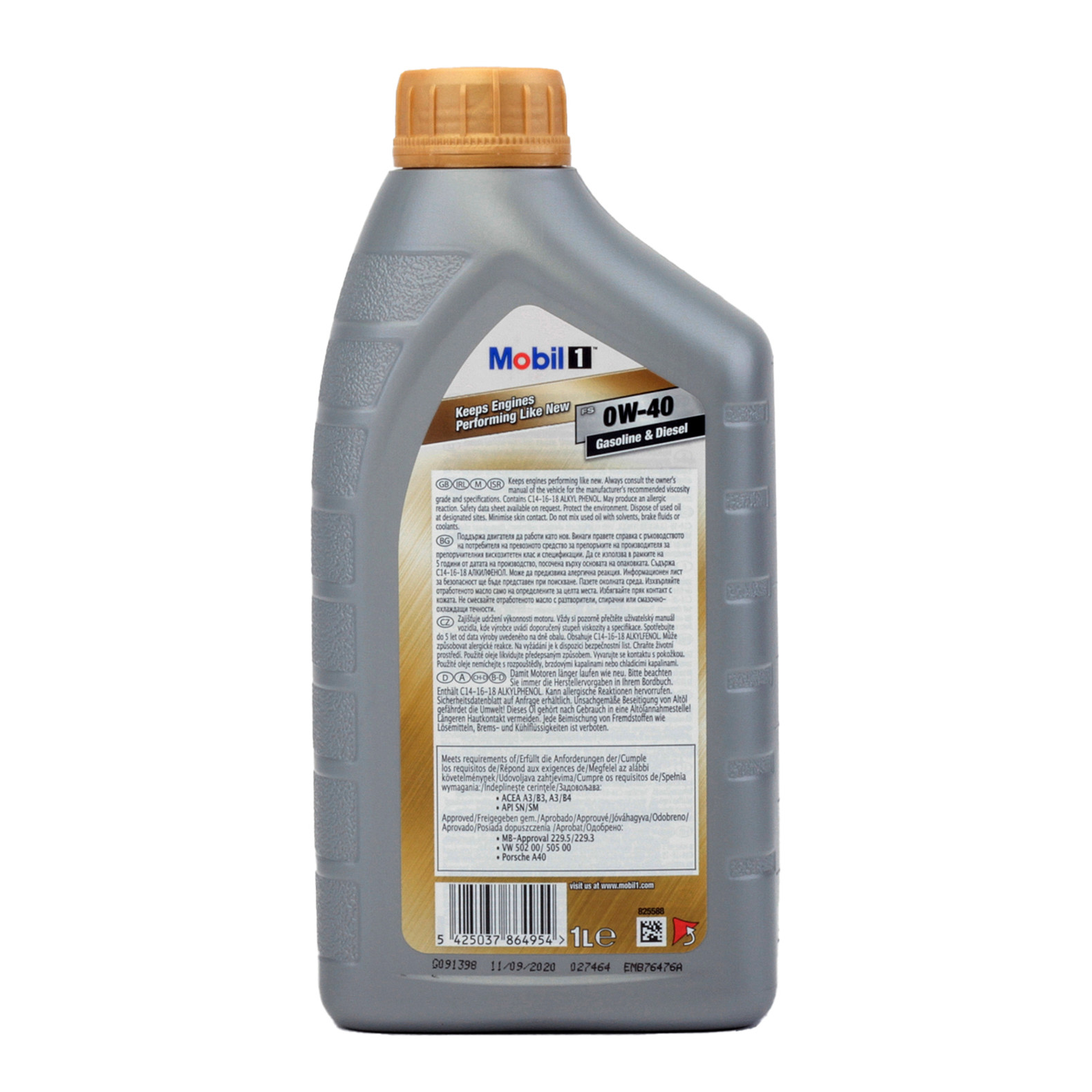 Norme: ACEA A3/B4 ; API SP ; API SN Plus ; API SN ; API SM ; API CF ; Fiat 9.55535-M2 ; BMW Longlife-01 ; MB 229.3 ; MB 229.5 ; Porsche A40